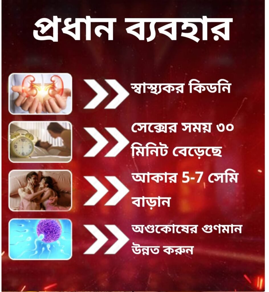 8.প্রসাবে ধাতু ক্ষয় দূর করবে। বীর্য গাড় করে এবং দেহের মধ্যে বীর্য তৈরি করে। 9.৩৫থেকে ৪৫ মিনিট স্ত্রী মিলন করতে পারবেন।